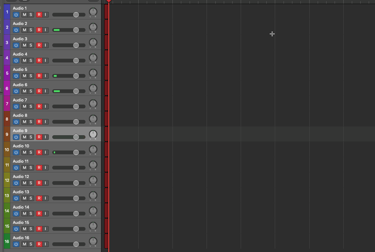 Ich nehme momentan 16 Spuren gleichzeitig auf (Schlagzeug) und habe das Problem, dass während der Aufnahme immer nur eine Spur quasi in Echtzeit mit der Wellenform "ausgestattet" wird.