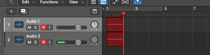 Schon gescheckt. Läuft wie vorgesehen, ich sehe beide Spuren (also die Regionen). Auch wenn ich während der Aufnahme den Mischer auf- und zuklappe.