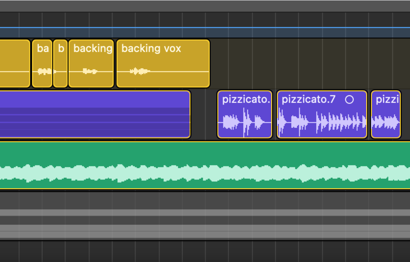 routing wäre alle spuren ausser pizzicato - haben als outbut bus 3 (string bus) und als send bus 4 (reverb)?