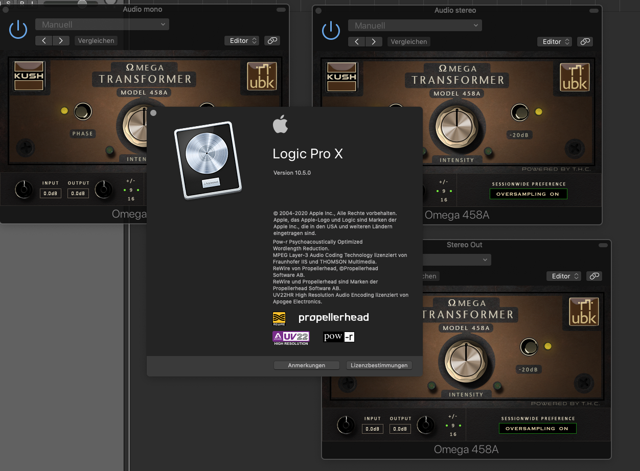 Das ist komisch - habe es gerade mit einem bestehenden Projekt probiert, da ist es beim Anfassen des Intensity-Reglers sofort abgestürzt, alle anderen Plugins, von PA, fxpansion, Waves haben problemlos funktioniert.Auch bei mir gibt es kein Problem mit Kush: OSX 10.14.6. Logic 10.5.