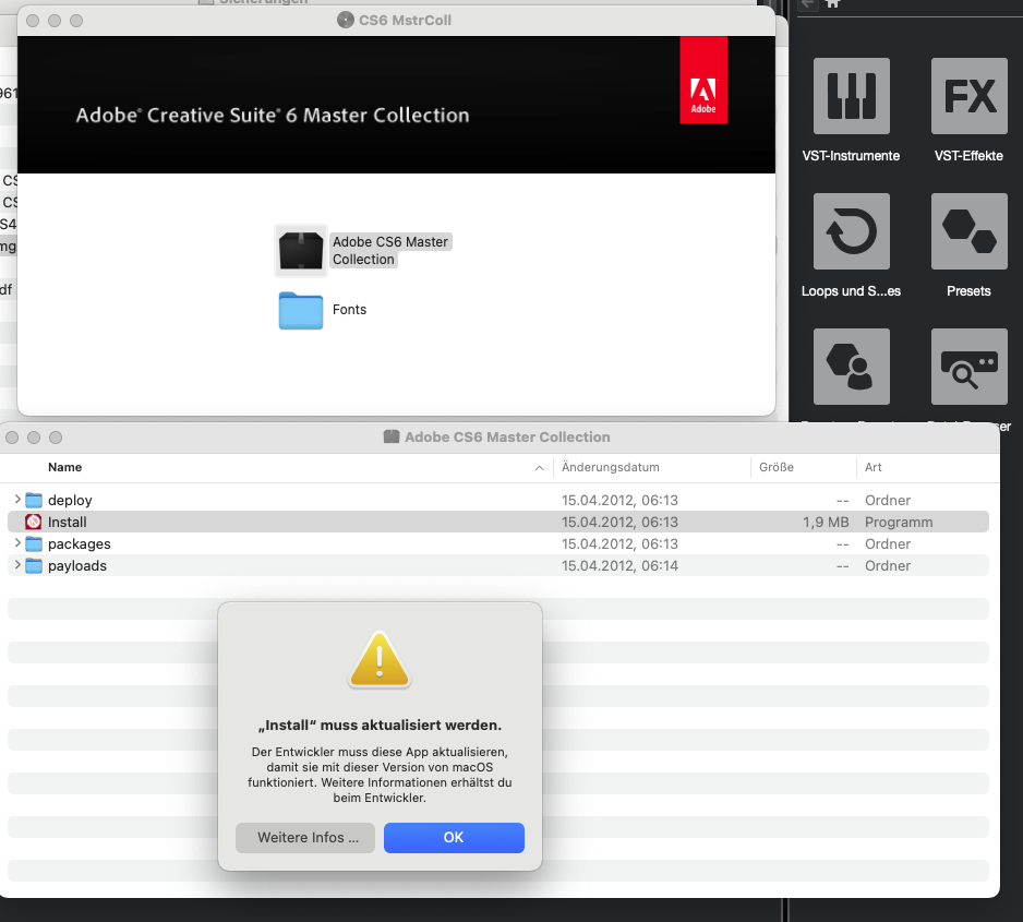 Das ist die letzte Master Collection mit Photoshop, Adobe Premiere, Illustrator, Acrobat ... die man ohne Cloud Abo kriegt. Reicht für mich privat völlig ...Änderungsdatum 2012. Was installierst Du da? Pacman?