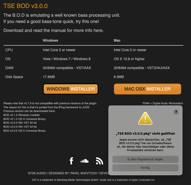Da macht er leider das gleiche. Ist laut Beschreibung nur für Intel Core 2 CPU's (und nicht ARM?)Versuche mal Rechtsklick auf das PKG File, dann auf öffnen. Damit lassen sich oft direkt die Gatekeeper Einstellungen ignorieren oder man kommt direkt zur entsprechenden Einstellung.