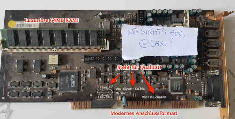 Vor allem isse ISA - und wir wissen alle, wie warm das im Vergleich zu PCI (und erst recht PCIe) klingt.