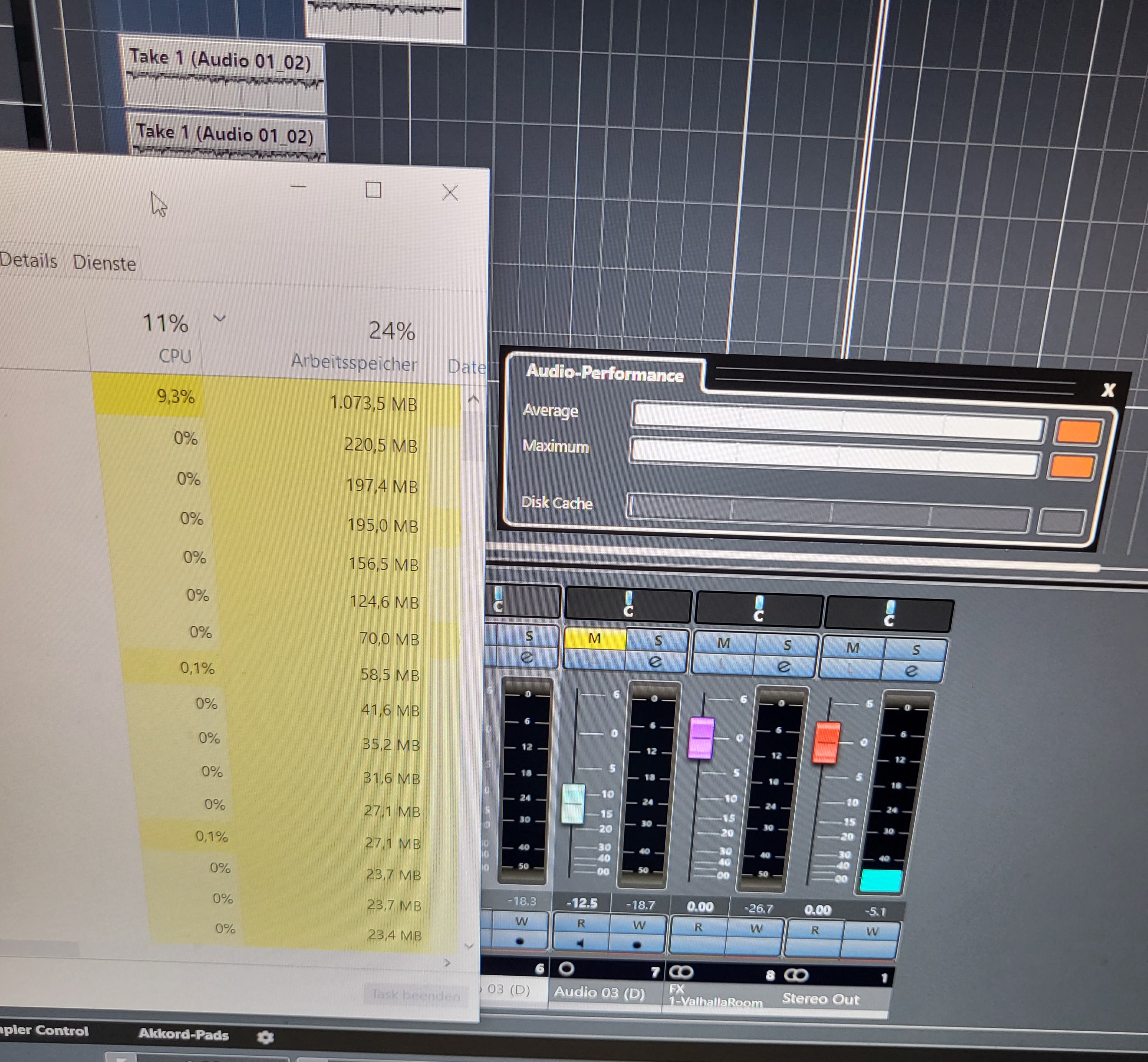 Ich beziehe mich auf deinen Screenshot mit der Audio-Performance Anzeige.