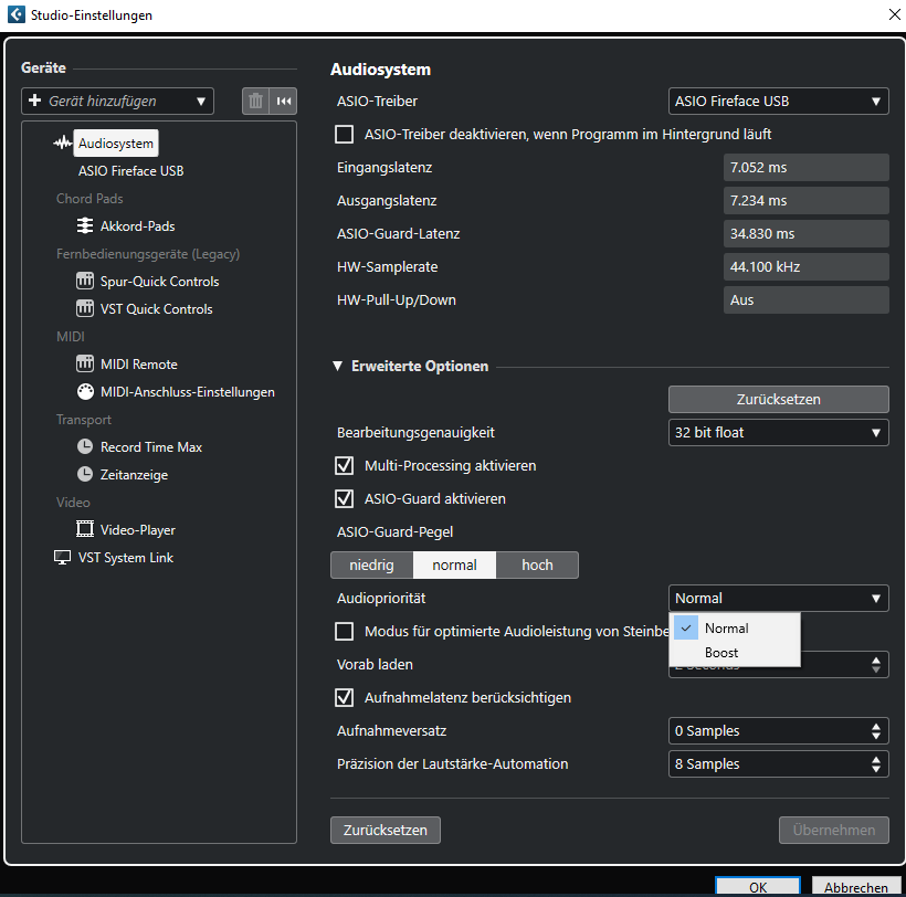 Es muss also überprüft werden warum Cubase nicht schnell genug drankommt.