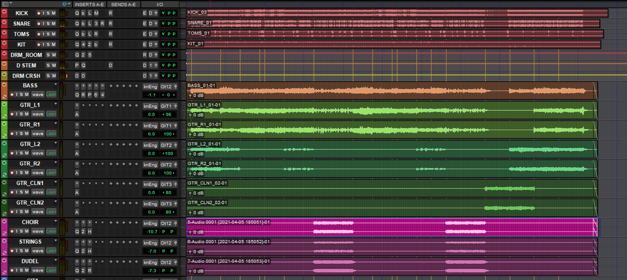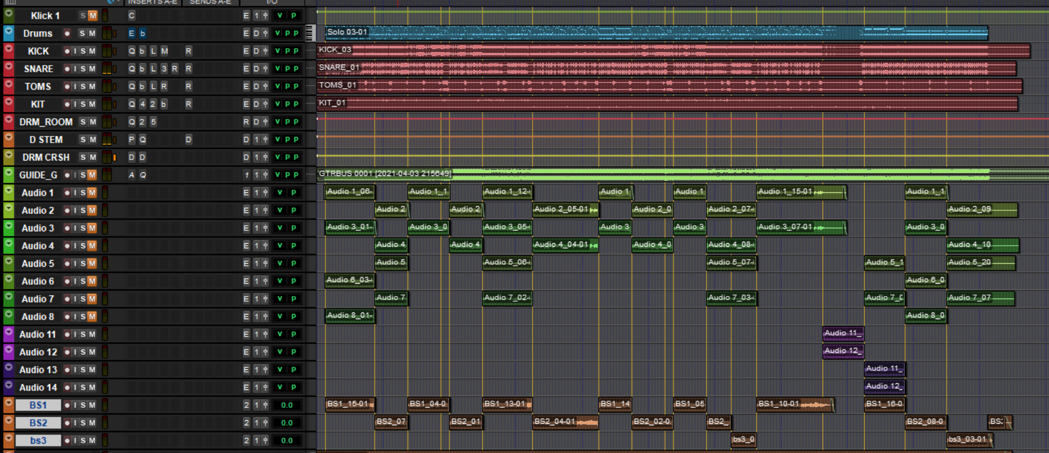 Dann bin ich mit der konsolidierten Midi-File und der Guide-Guitar nach Pro Tools umgezogen, und dort diesen Flickenteppich eingespielt: