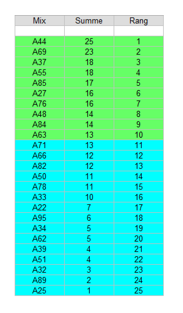 Hier sind die Ränge ohne Gewichtung: