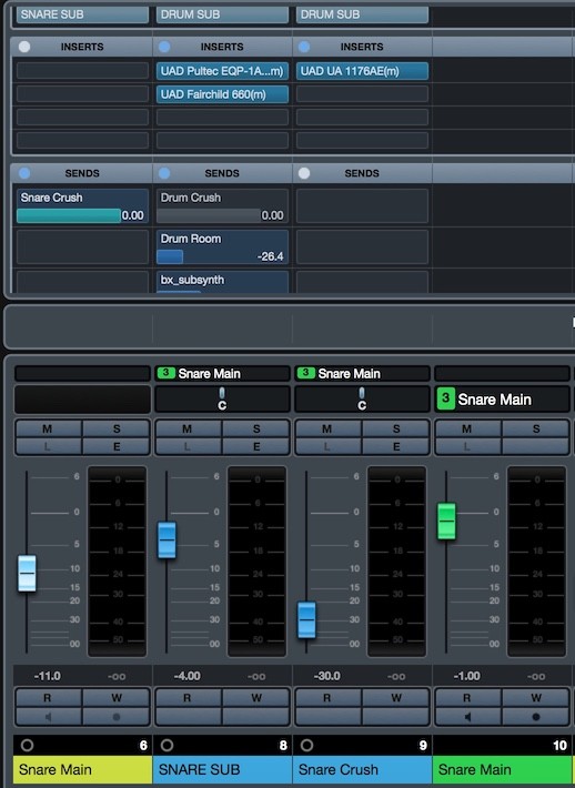 Zusätzlich lege ich auf die Snare als Send (Drum Room) etwas Raumhall (der aus dem EZ Drummer war entweder zu wenig oder hat mir nicht gefallen).