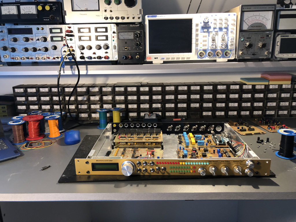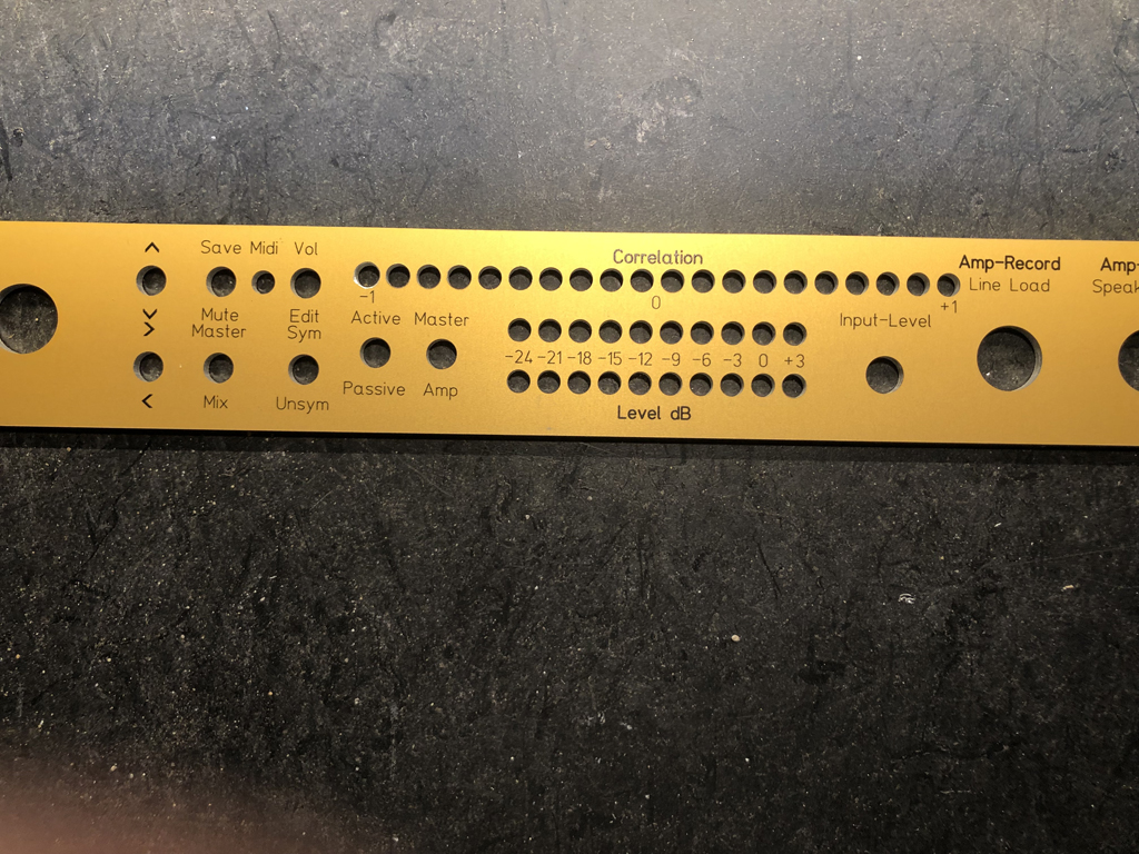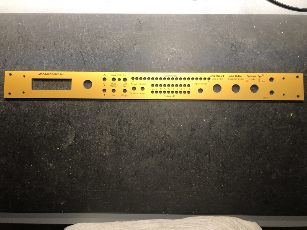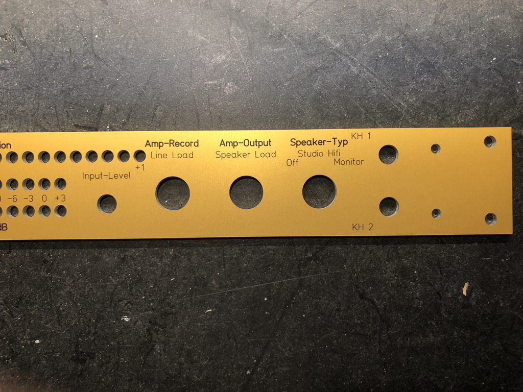 Sehr geil! Glückwunsch! Und der denglische Rechtschreibfehler bei Speaker-Type (das e fehlt), macht es erst authentisch!Nun bin ich weitergekommen. hab erstmall alle Schaltungen entworfen, aufgebaut und getestet. Zum ersten mal hab ich ich mir eine Frontplatte für´s Gehäuse von einer Firma fertigen lassen.