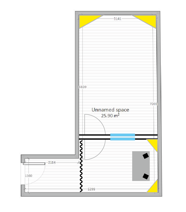 Anbei eine kleine Skizze wie ich mir das ganze vorgestellt habe. Das weisse rechteck vis-a-vis vom Piano sollte der Schreibtisch /Abhörposition sein