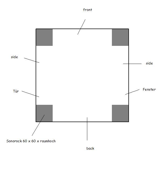 Ist das so korrekt? Hast du die Ecken so behandelt? Oder ist front und back vollflächig raumhoch? Die Decke ist komplett 300mm dick Sonorock? Die ganze Decke?