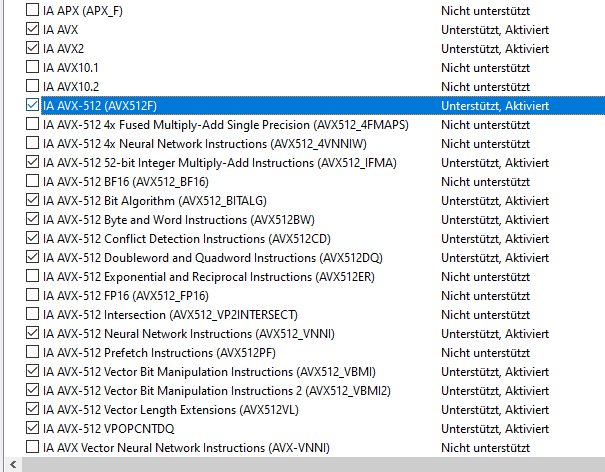 Die neuern Intel Prozessoren (ich meine ab der 12. Generation) unterstützen ihn nicht mehr.Also zumindest bei einigen AVX512 Befehlssätzen steht da bei einem Intel i9 "unterstützt".