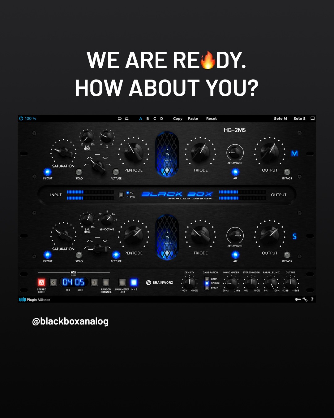 Save BIG if you already own one of our Tone/Character plugins, bx_digital V3, Neold V76U73, ACME Opticom XLA-3, bx_townhouse, bx_opto, elysia alpha compressor, elysia mpressor, Mäag Magnum-K, Millennia TCL-2, Purple Audio MC77, Shadow Hills Mastering Compressor (or Class A), SPL IRON, or Vertigo VSC-2. Log in to your account and simply add the Black Box HG-2MS to your cart!