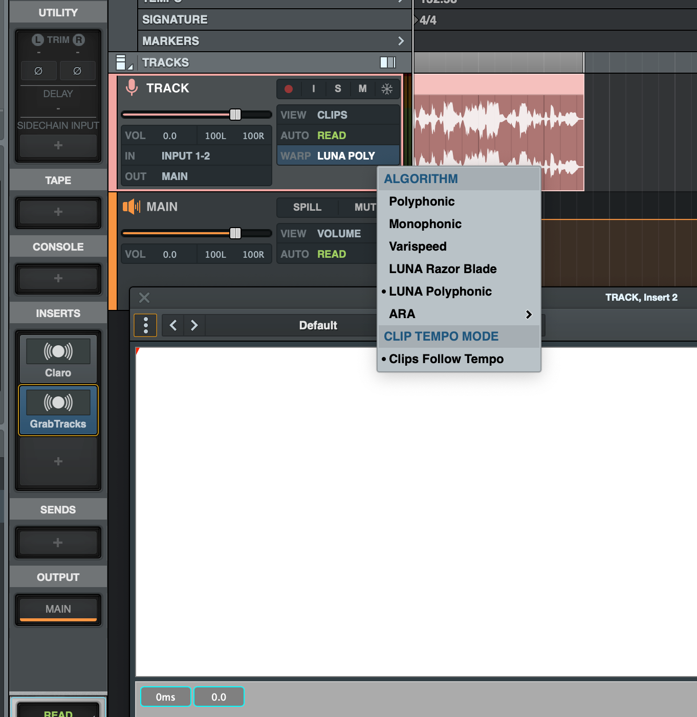 UAD LUNA wird unterstützt. Kannst du versuchen, GrabTracks über WARP → ARA → GrabTracks einzufügen?Luna, OSX 12