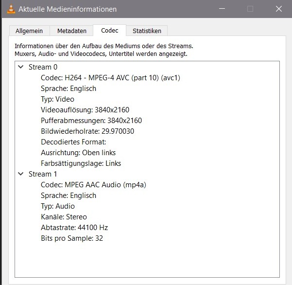 Footage ist in 4K (3840x2160) und läuft super flüssig im VLC-Player.