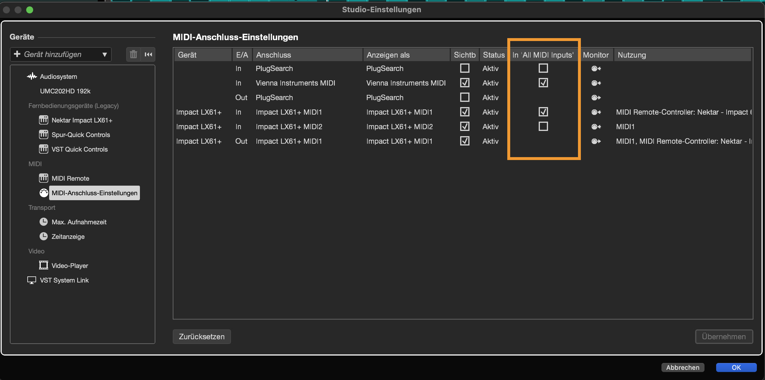 Hallo ich habe einen Presonus Faderport 8 den ich mit Mackie control in Nuendo13 installiert habe. So jetzt zum Problem mit Halion. wenn ich im programm auf orgel einstelle dann Midi1 wähle dann höre (kommen) ich Töne oder piepen, wenn ich die Fader berühe oder einige Tasten auf dem Faderport. Wenn ich auf den Midi kanal 2 gehe ist das Problem weg.