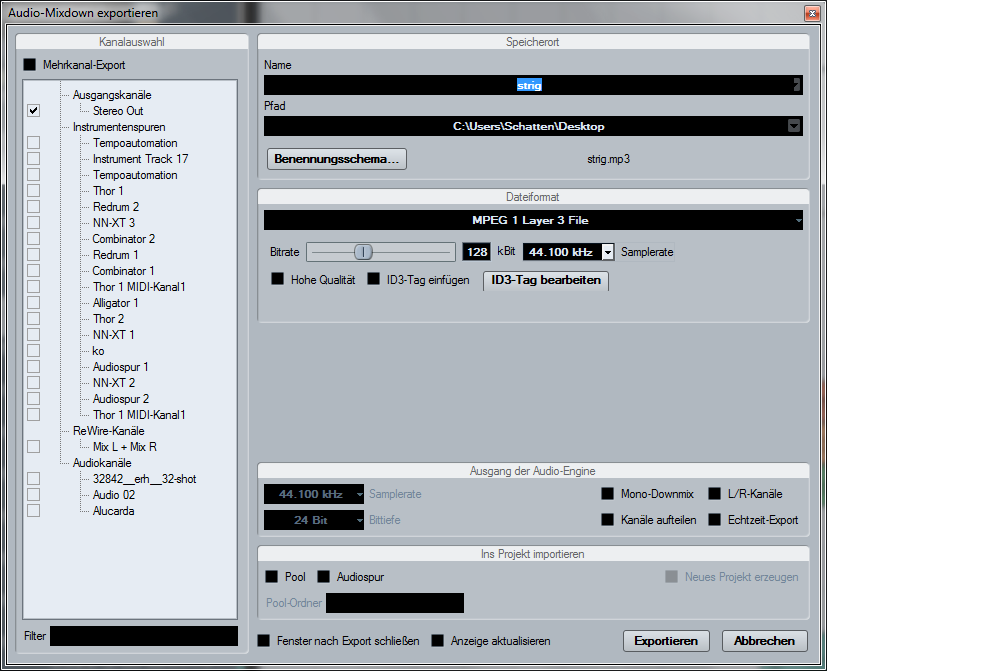 Ich bin hier langsam am verzweifeln. Arbeite mit Cubase 5 und möchte mein Project ganz normal im Audio-Mixdown exportieren. Klappt auch alles wunderbar. Nur wenn ich mir den Song über Winamp anhöre, sind da einige Spuren total verschoben. Einige Sachen fangen in etwa 5 Sekunden später an, als sie eigentlich sollten! Dieses Problem hab ich noch nie gehabt. Im Project selber ist alles so wie es sein soll. Bin am verzweifeln. Wer kann mir helfen?