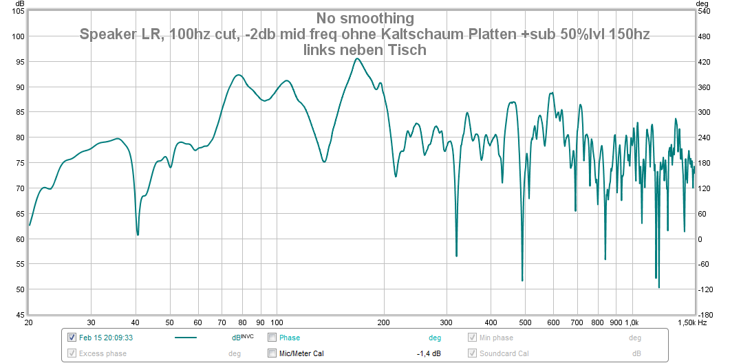 Wenn ich jetzt einfach von der Position des Stuhls klatsche gibt es einen kurzen Nachhall, es wird sicherlich von den fasst kahlen Seitenwänden kommen. Sollte ich diese komplett mit Pyra-Platten behängen?