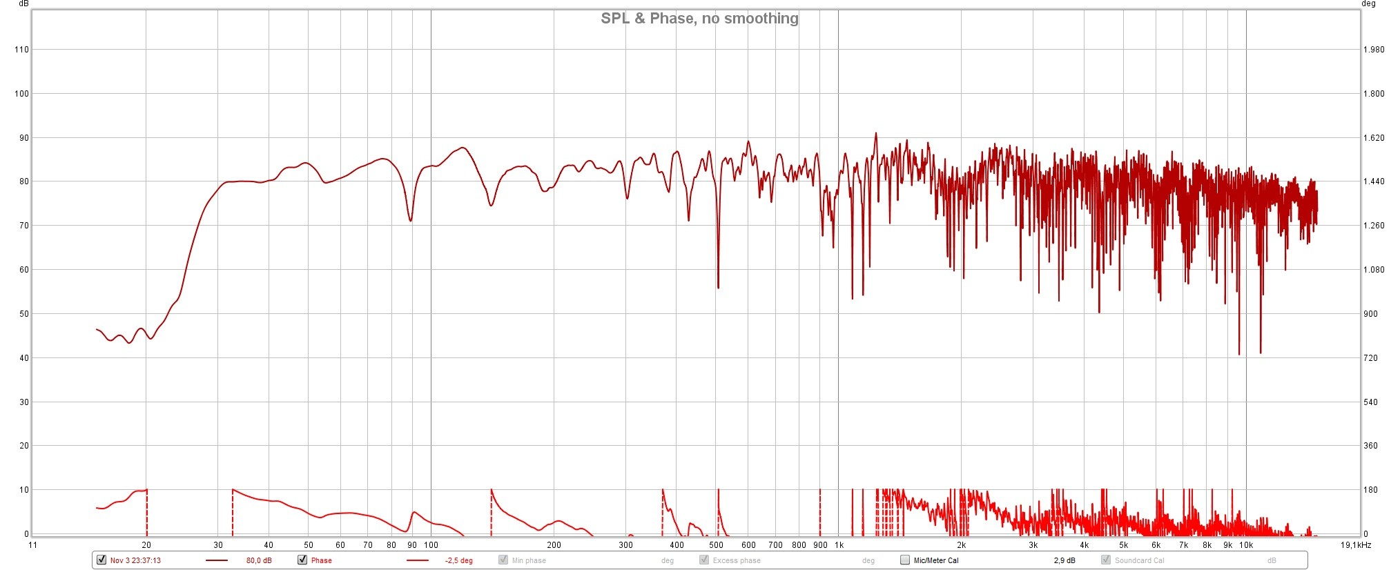 Doch, es hat sich auf jeden Fall verbessert. Die 30 Hz sind zwar wieder etwas mehr jetz, aber wer weiß, was da bei den Messungen irgendwo gewummert hat. Ansonsten wurde die Mode wie geplant durch die Verlattung bei 50 Hz deutlich abgesenkt und der Hochton wieder etwas zurückgegeben.