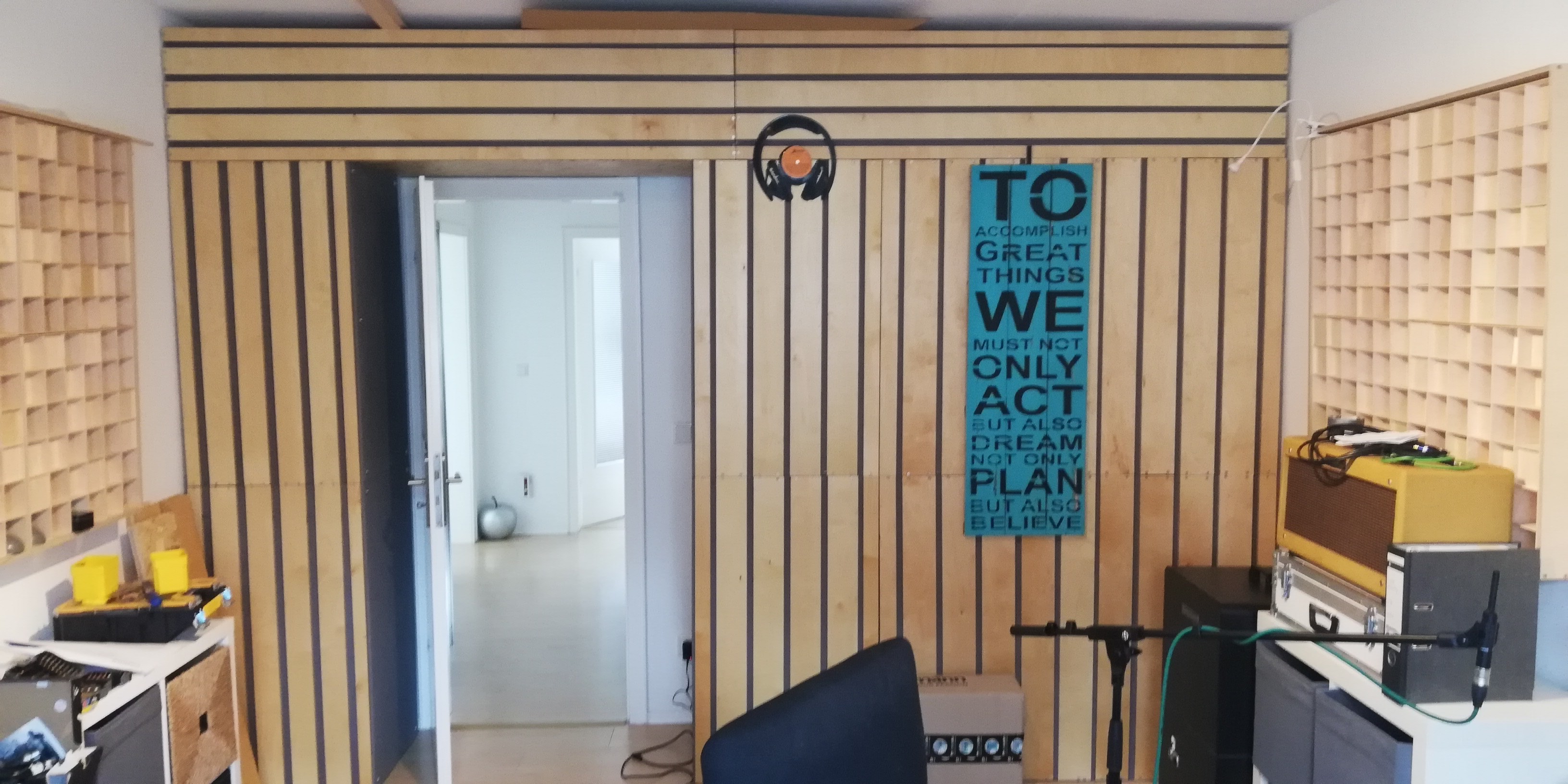 1-3 = Deckenkantenabsorber! Wird 10cm runterhängen mit Airgap. 20cm Ternmarock 50. Wird ganz nah an der Frontwand hängen!