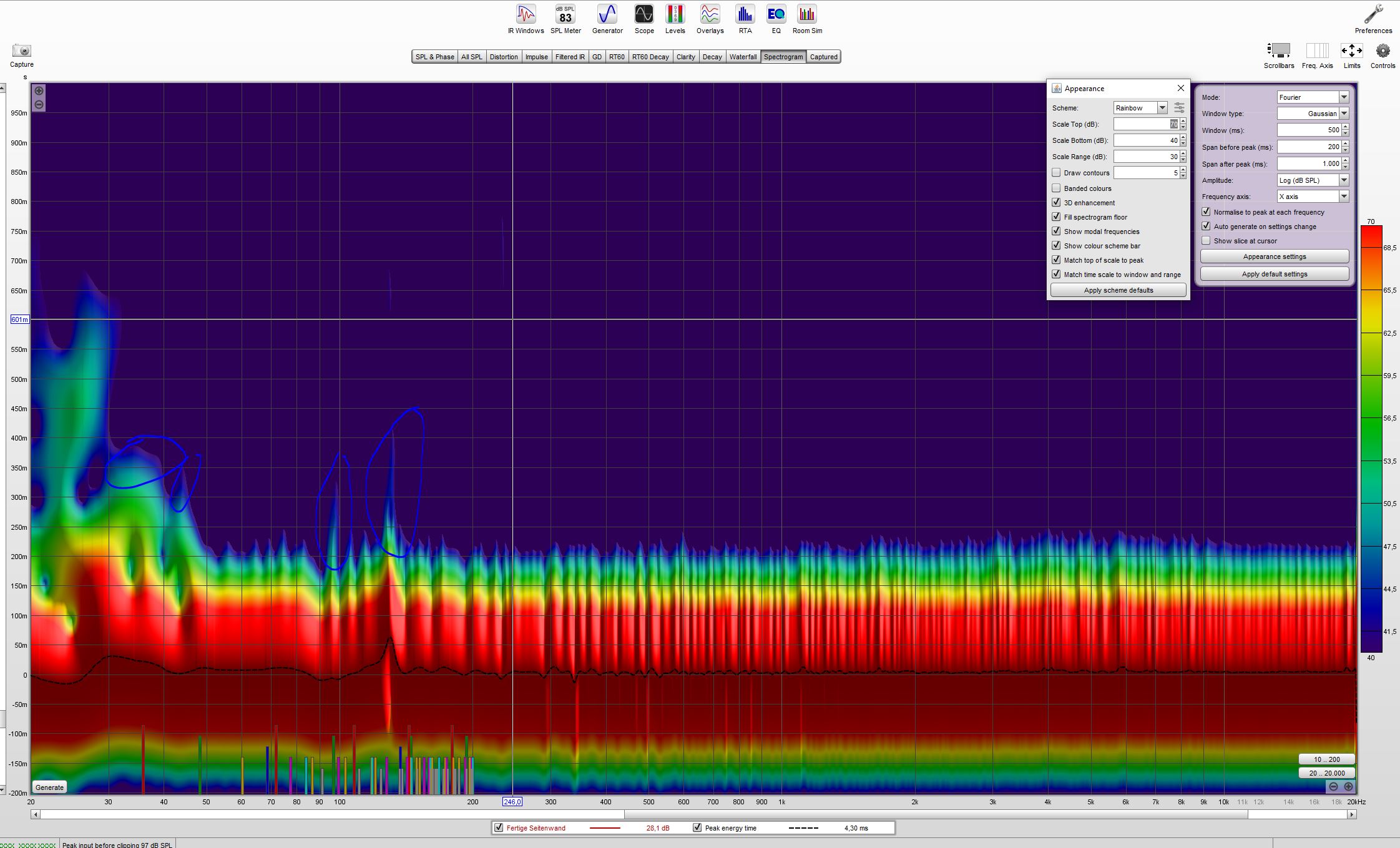 0-1-0 & 0-2-0 seitliche Moden: möglichst große, zusammenhängende Fläche an der Seite deckenhoch, aber mindestens die Hälfte der Wand