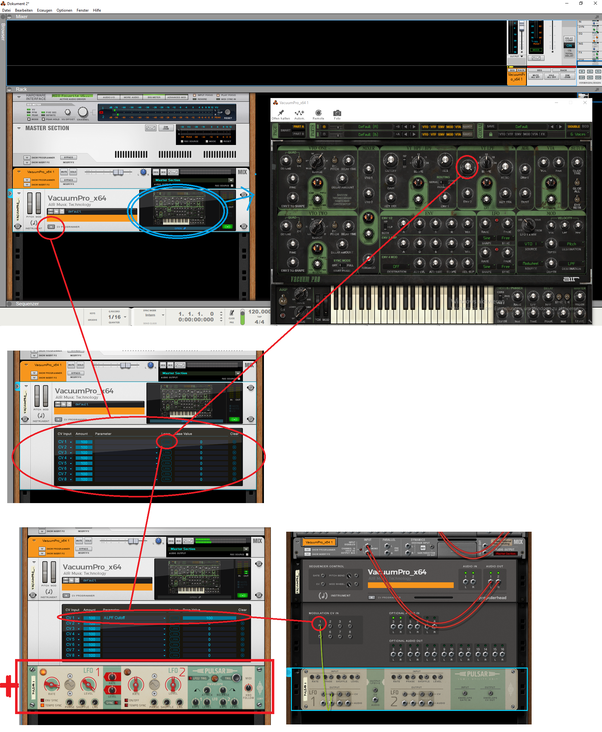 So würde man das mit der CV (Control Voltage (Steuerspannung)) machen (siehe Bild)