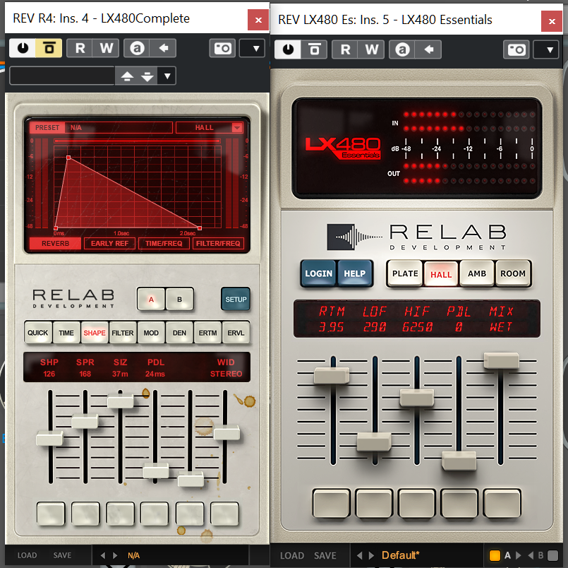 Damit das alles (wie leider zu oft) nicht nur theoretisches "Blablabla" bleibt, habe ich mal versucht, R4 als auch Nimbus an ein Reverb (Typ "Hall") vom LX480 Essentials anzupassen und 3 Beispiele hochzuladen. Die Einstellungen in R4 und Nimbus sind nahezu identisch (der R4 bietet ein paar Stellschrauben mehr an):