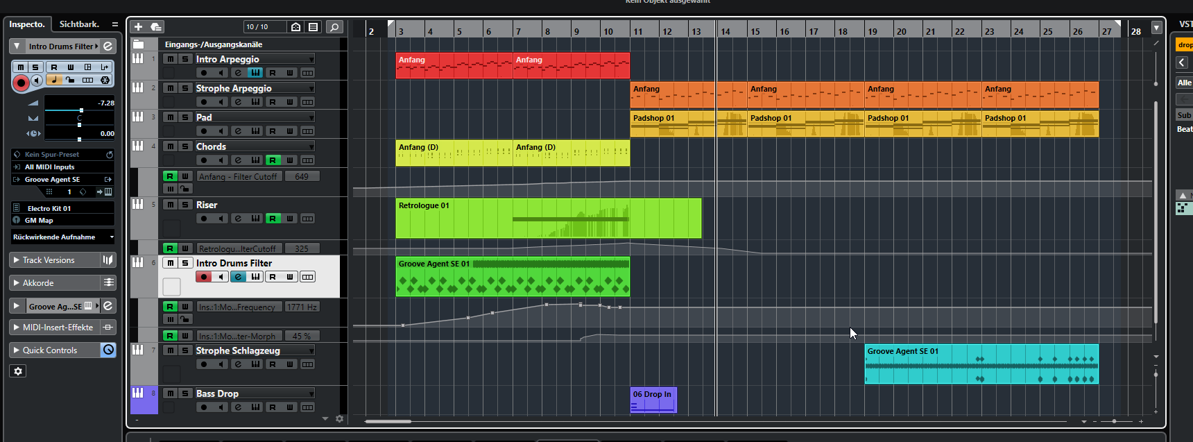 Also wenn ich mit den Cubase Standard-VST-Instrumenten rumbastele und so arrangiere: