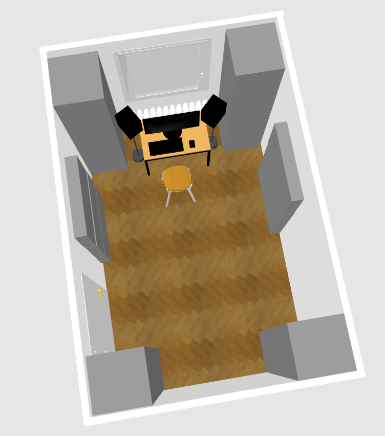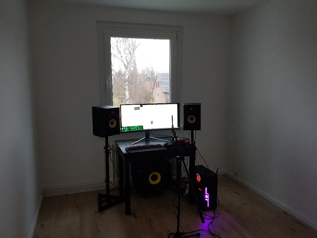 - Subwoofer ist noch nicht eingemessen, was Phase sowie Volume angeht. Hier muss ich noch nach einem geignetem Tutorial umschauen. Mit Testton am Computer. KRK hat zwar dise App, aber dafür muss man sein Handy an den Lautsprecher anschließen... Bislang habe ich versucht die Teller der Tieftöner im Teilkreis auf eine Höhe zu bringen.