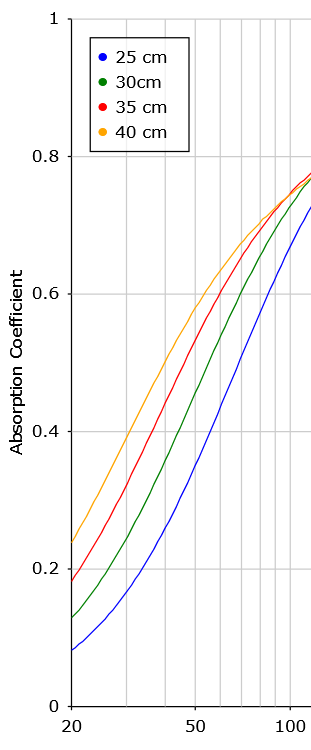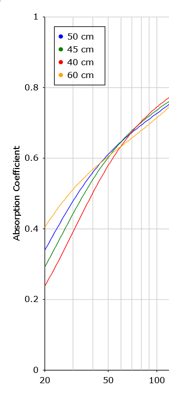 2) Reichen auch 50 cm breite x 62,5 cm? Deckenhoch. Laut rechner (ohne Airgap) ist kurz hinter 40 Hz der 50cm starke Absorber sogar effektiver.