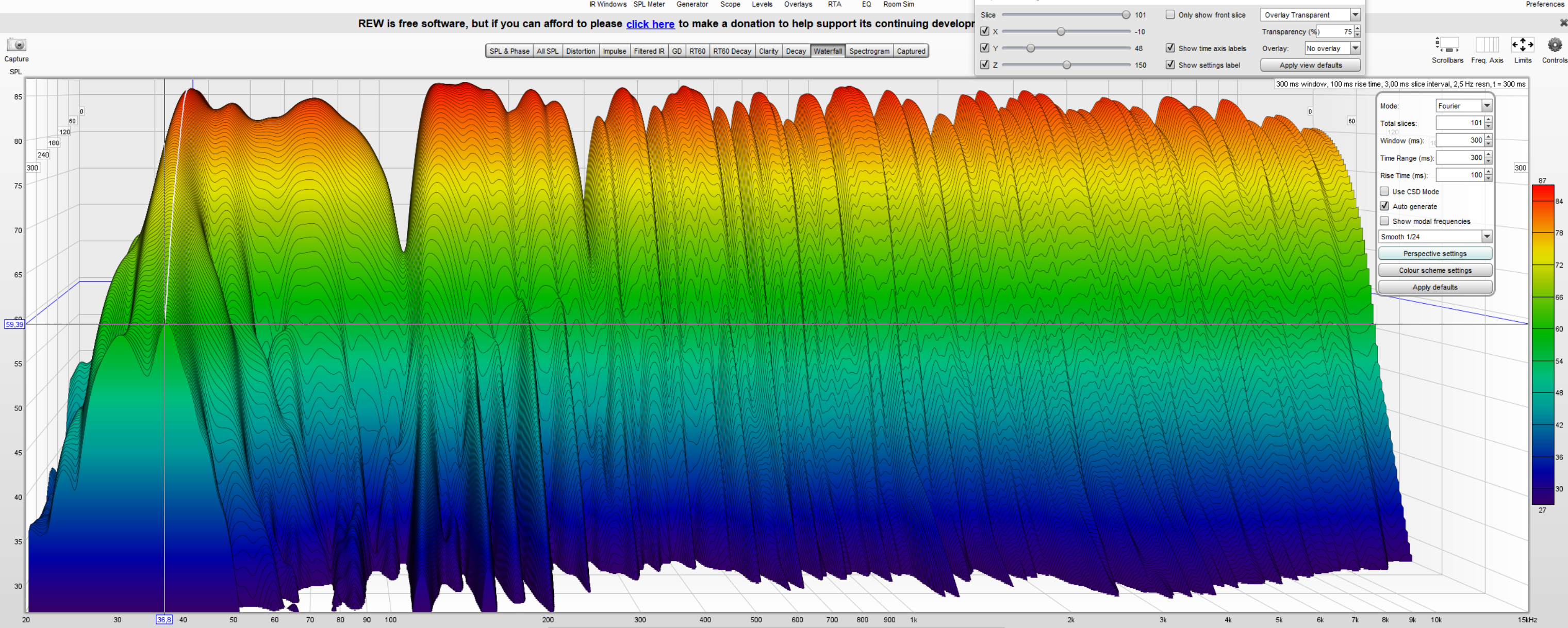Du solltest dir vor dem Bau Gedanken machen welche Flächen voll absorbieren müssen. Bei deiner Raumgröße müssen in der Regel alle Flächen die nicht im Erstreflexionsbereich sind verlattet werden weil man sonst im Nachhall zu weit nach unten rutscht und die Bude unangenehm trocken wird.Ich habe viel gelesen über in den Höhen überdämmen. Bin mir unsicher. Brauch ich bisher ein Verlattung? Bei 800hz bis 2000 hz habe erreiche ich desöfteren die RT60 nicht.