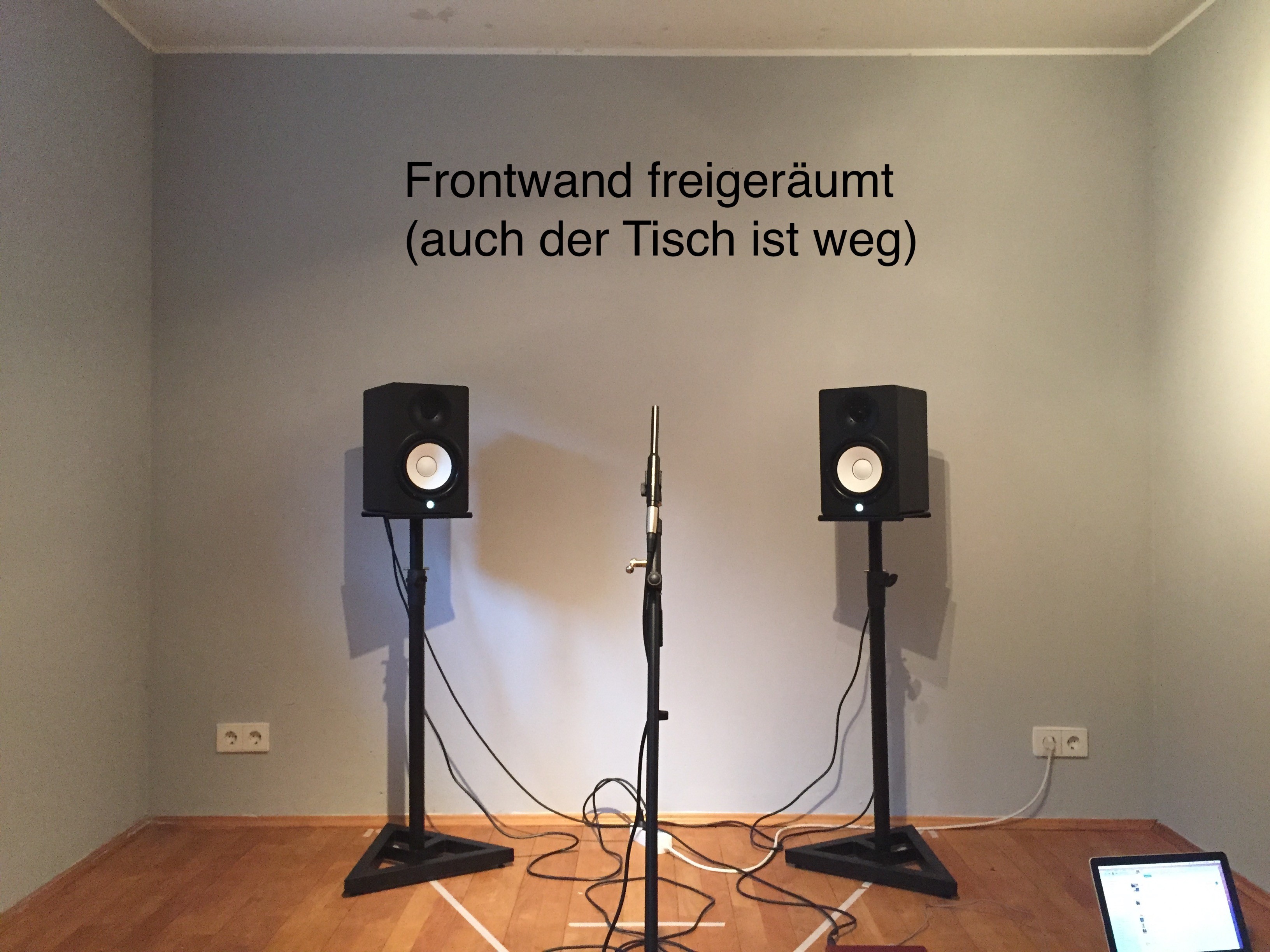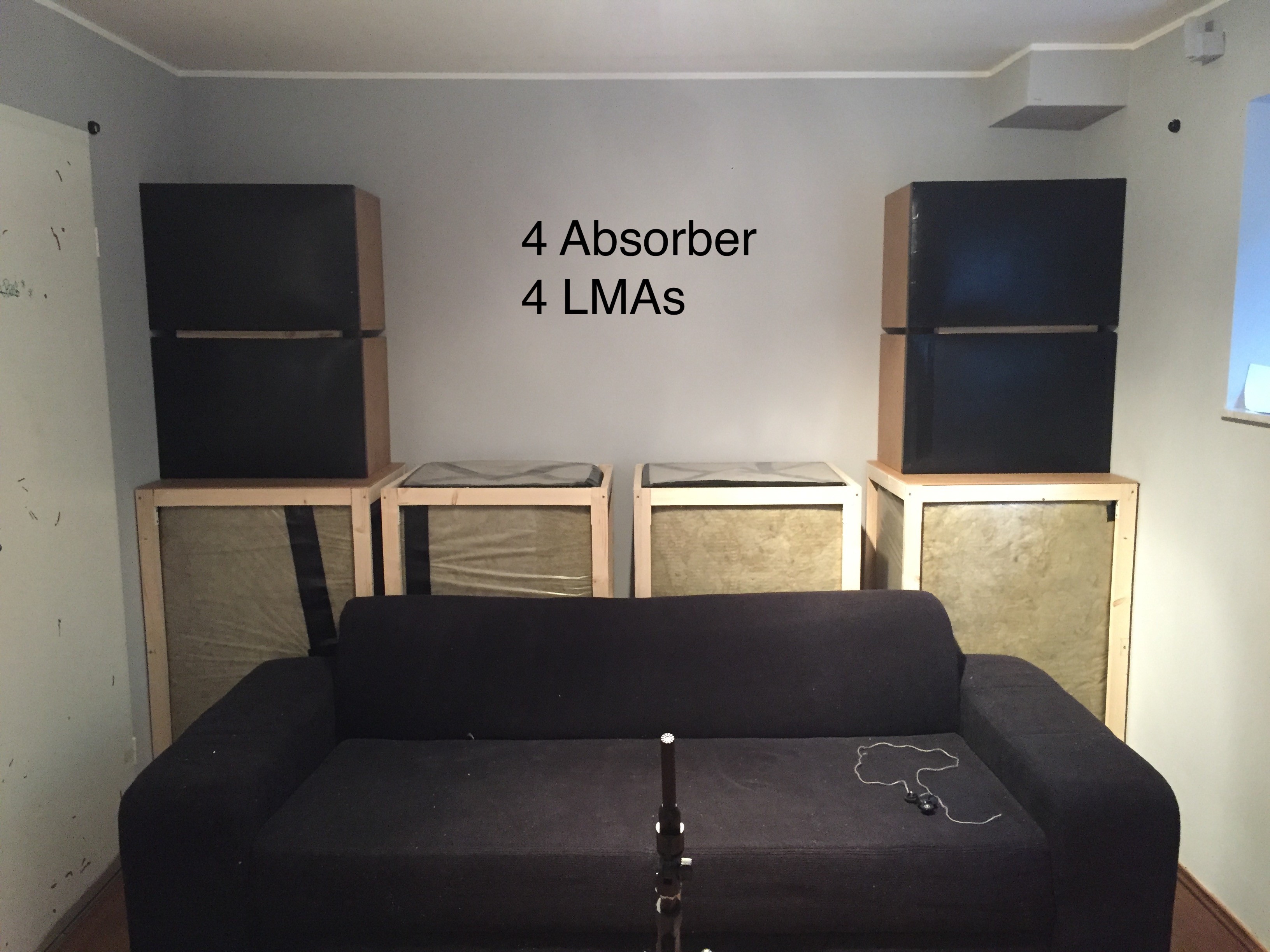 Gute Idee. Die grossen Absorber in sinnvoller Weise vorerst aus dem Weg geschafft.An der Rückwand kannst Du ruhig alles andere erstmal hinstellen, um den Bass zu tamen. Dann sieht man Sbir auch besser in den Messungen.