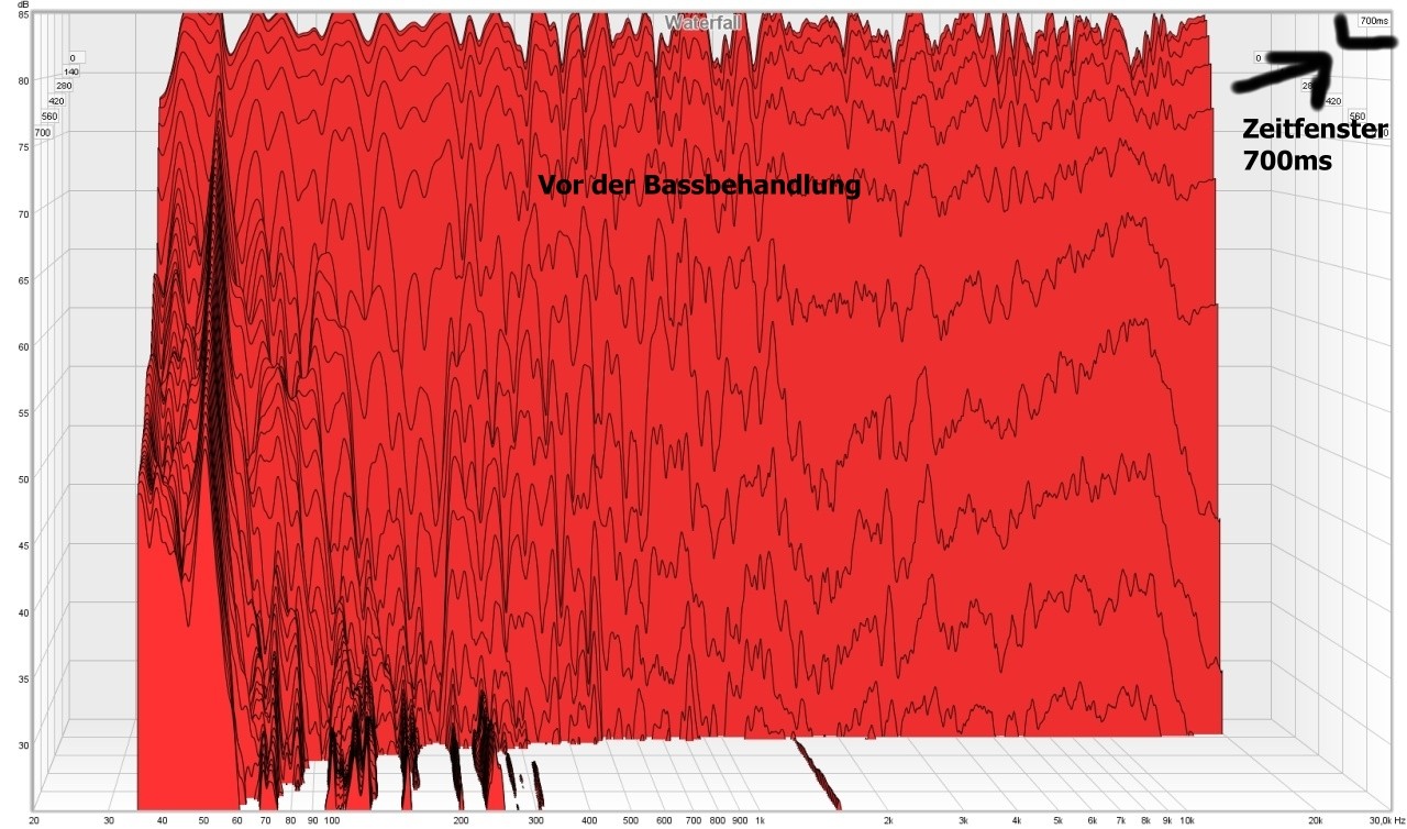 Mit Sinuston und Handpegelmeter, zur Not geht auch ne App vom Smartphone ( noch nicht selber getestet ), die Stellen im Raum kontrollieren ob Simulation der Realität entspricht. Da dann gucken wie weit die Moden in den Raum rein dröhnen.