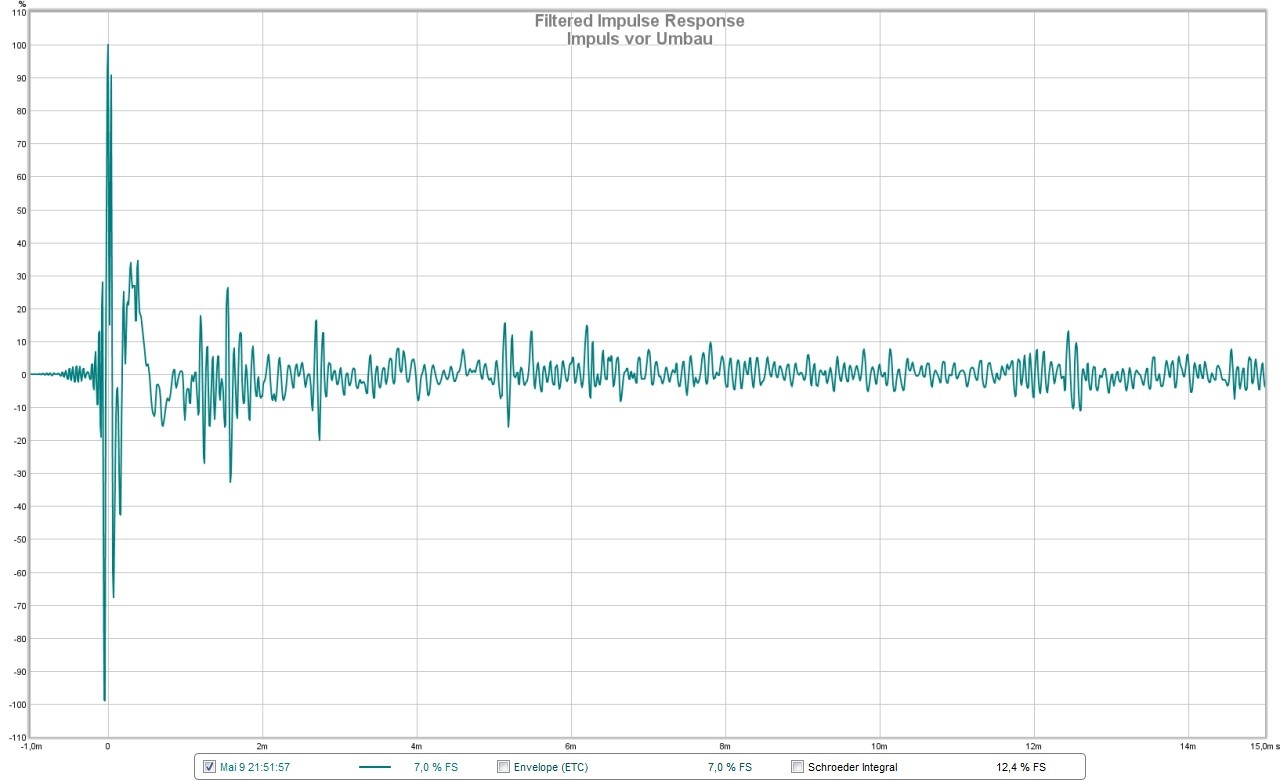 Bild 10: Erstreflektionen vor Umbau ( Nahfelder, Stereo, Filtered IR, dBFS Scale )