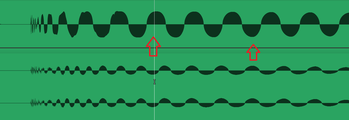 Schau bei diesem Bild wo die rote Pfeile sind. Bei der oberen Kick geht die Phase nach oben und bei der unteren nach unten.