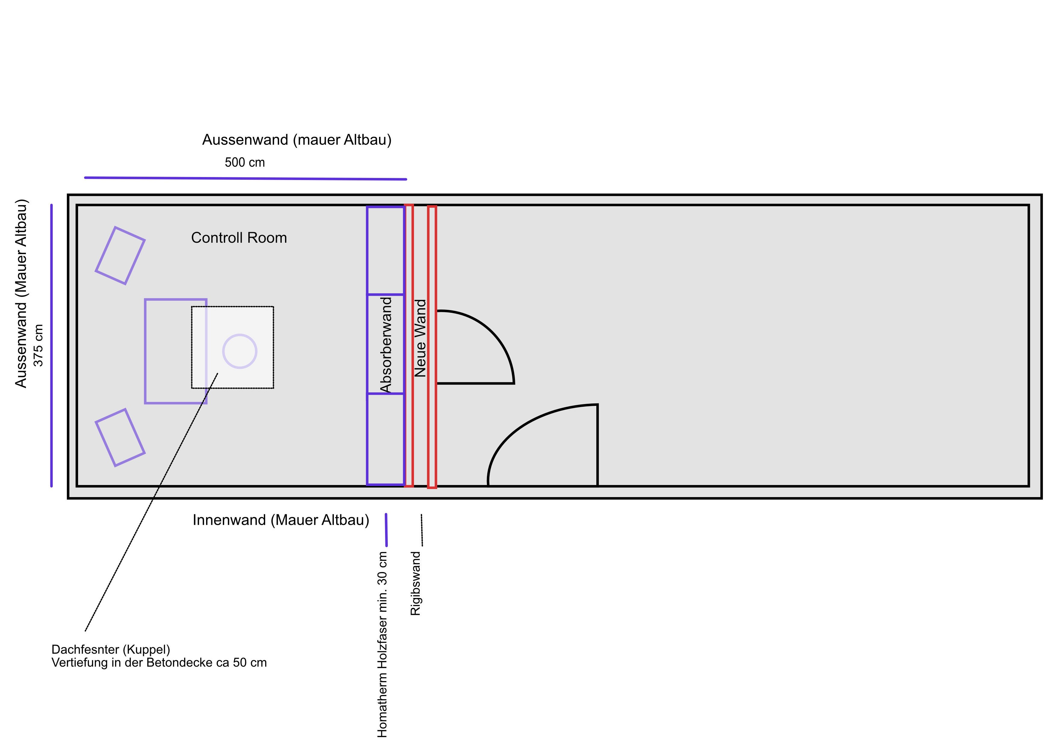 3. Ich kann den Raum nur von einer Seite (der Rückwand die ich bauen werde) betreten. Sollte ich den Abhörplatz 180 Grad drehen um mehr wirkung von der Akustikwand zu bekommen? Die Raumaufteilung wäre mir lieber genau andersrum um den Raum besser zu nutzen.