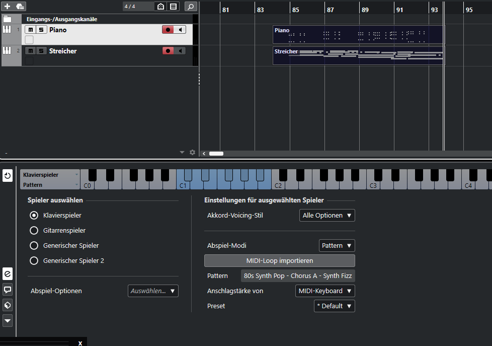 Es werden drei Scaler Instrumentenspuren angelegt. Auf allen dreien stehen die gleichen Akkorde zur Verfügung.