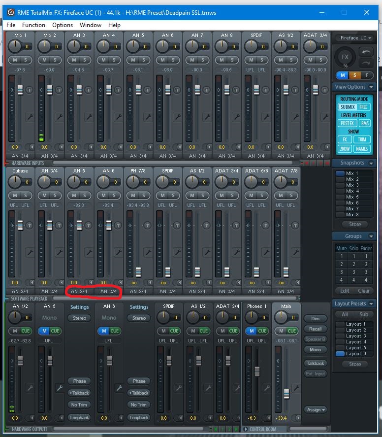 Return Bus Analog In 7+8. Dementsprechend habe ich die Kabel von meinem RME Fireface an meine Lunchbox angeschlossen.