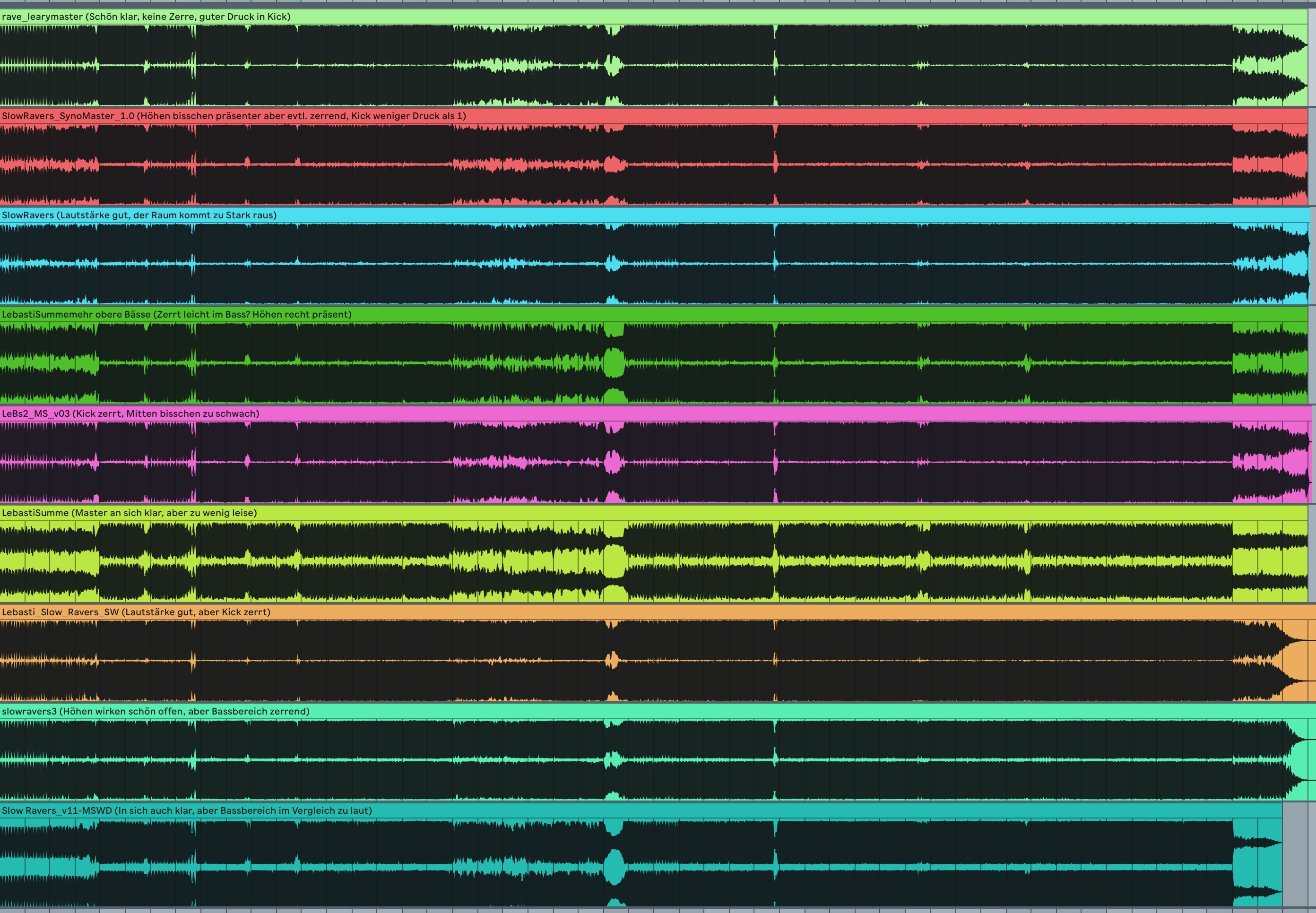 Ich würde hier, wie bei einem deiner letzen Tracks, echt auf die Höhen aufpassen. Die sind hier meiner Meinung nach echt zu heftig. Vergleich das mal mit den smoothen Höhen beim ersten Vergleichstrack. Wäre ich dein masterer of da universe, würde ich dich bitten die Shaker/Hats schon im Mix zu entschärfen, damit die nicht so durchknallen.