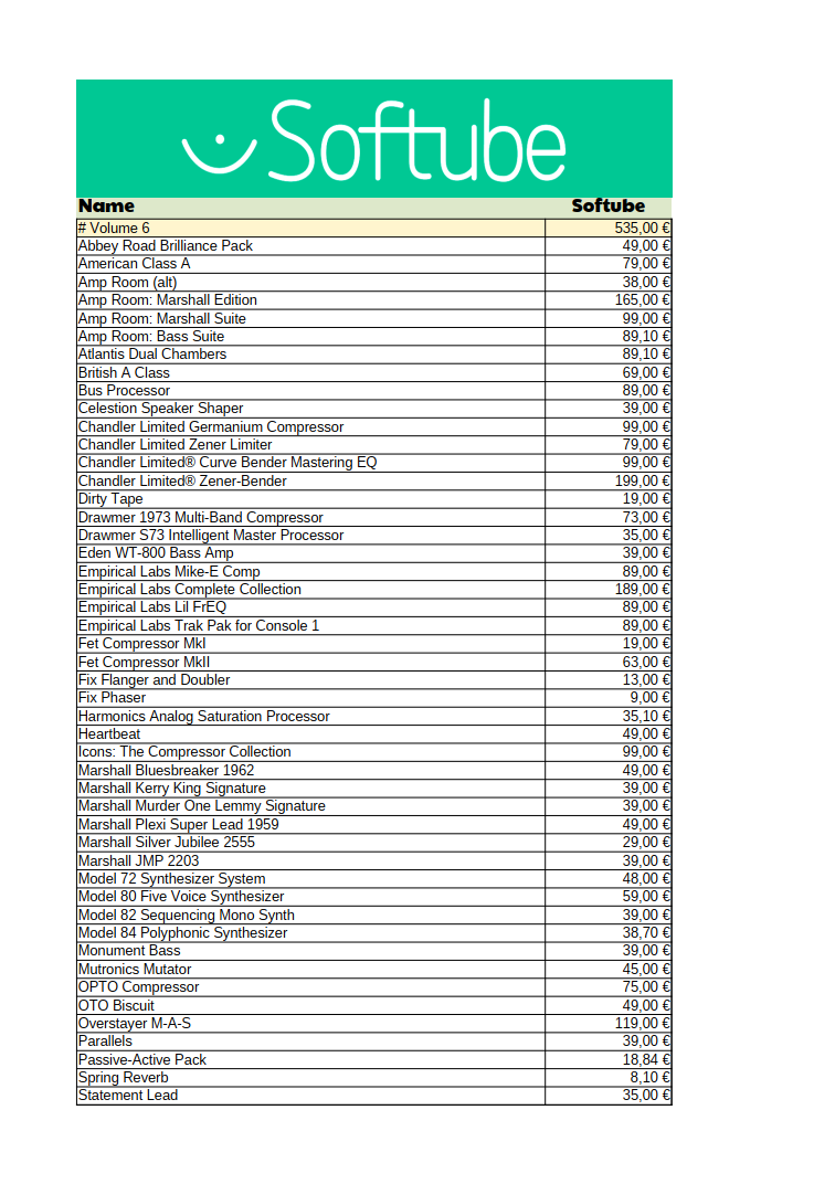 Hier die aktuelle Liste mit Softube's niedrigsten Angebotspreisen.
