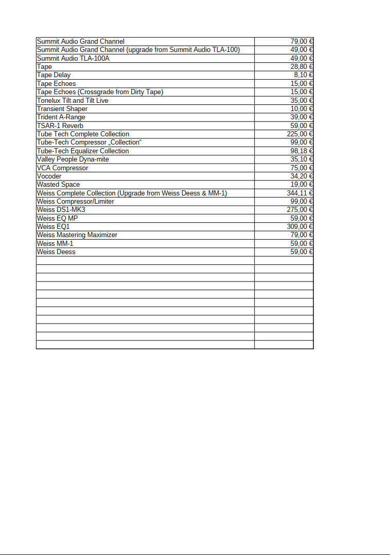 Die Preise beziehen sich auf das Forum und meine eigenen Käufe. Eventuell sind die Plugins also noch günstiger zu bekommen.