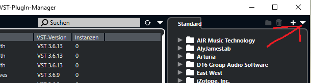In der Pluginverwaltung von CUBASE bleiben die Einträge jedoch erhalten.