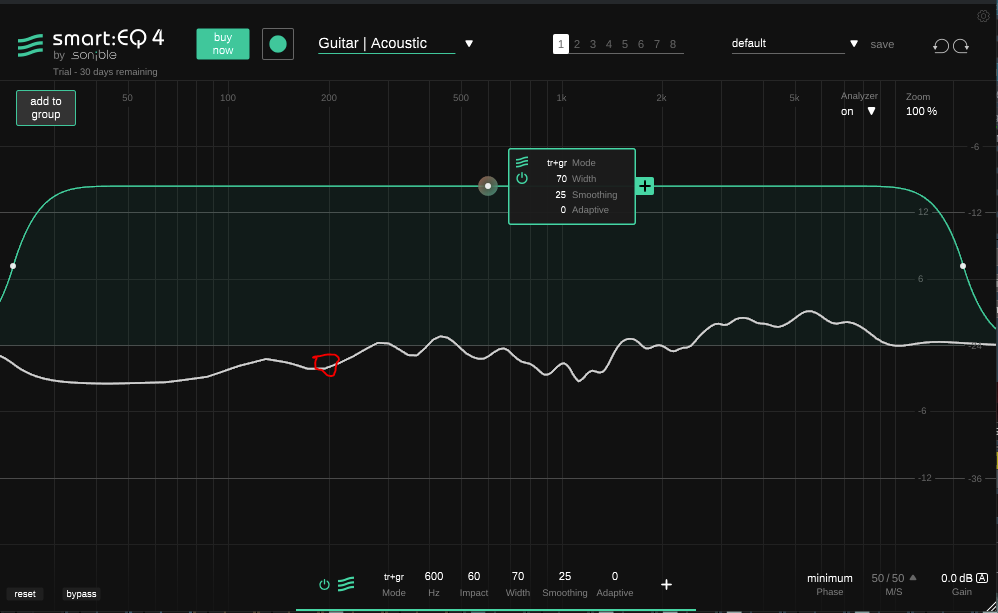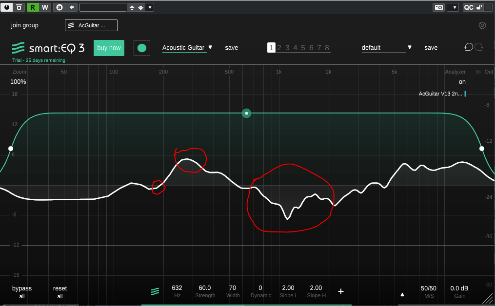 Smart EQ4 mit identischer akustischen Gitarre aber mit BSA M250