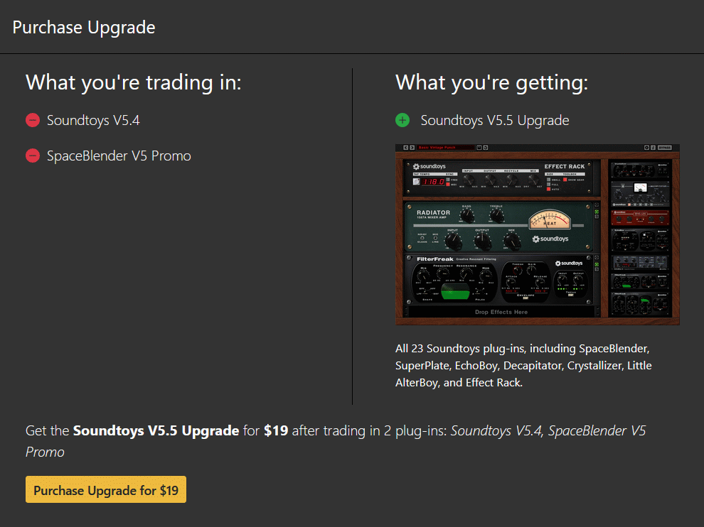 Soundtoys möchte gerne - und kommuniziert das auch so - 19$ von allen Leuten haben, die bereits