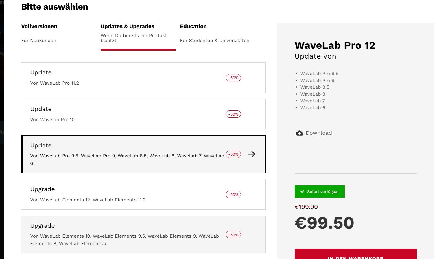 Nein, das stimmt nicht!Normal liegt das Update WL Pro 9 auf 12 bei 199 €, jetzt für alle 99,50 € (50 % Rabatt).