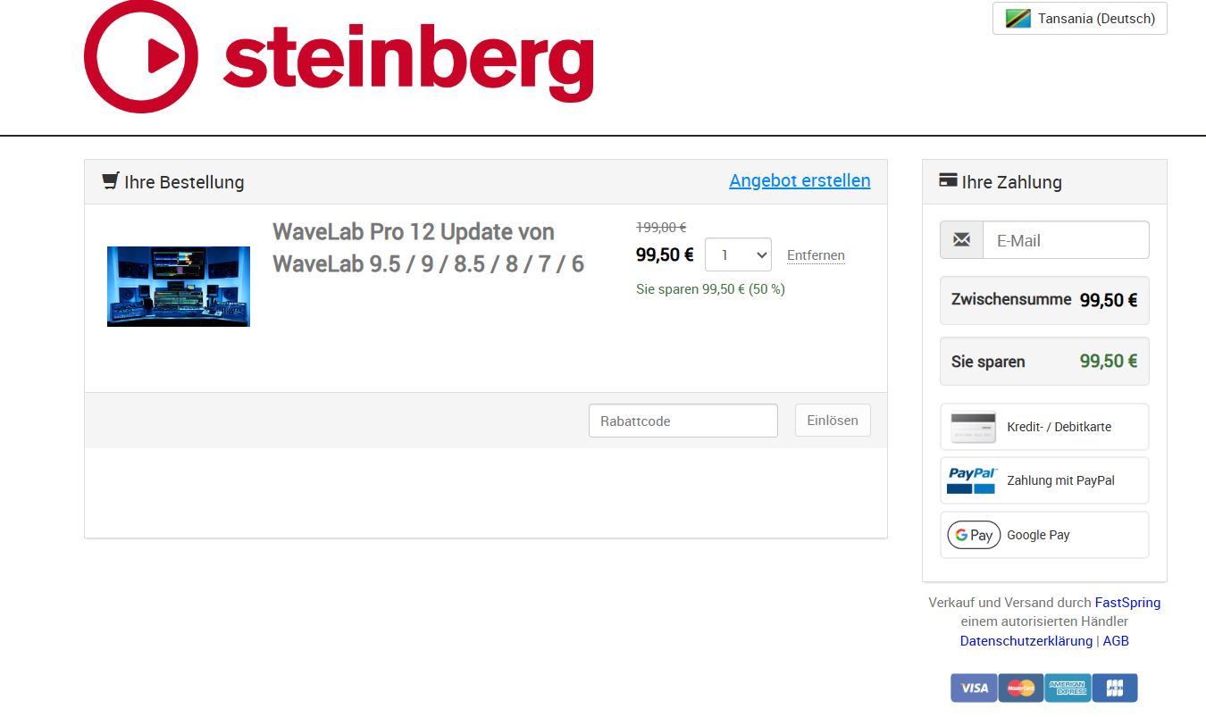 Ich habe nur WaveLab Elements und Dorico Elements, habe aber auch die 70 %-Gutscheine für die Pro-Versionen.Wenn du eine Lizenz für Cubase Pro 13, Dorico Pro 5, WaveLab Pro 12 oder Nuendo 13in deinem Steinberg Account registriert hast, erhältst du während des Aktionszeitraums im Steinberg Online Shop exklusive Treuerabatte von bis zu 70% auf die Vollversionen von Cubase Pro 13, Dorico Pro 5, WaveLab Pro 12 und Absolute 6. Ausgenommen sind Produkte, die du bereits besitzt.