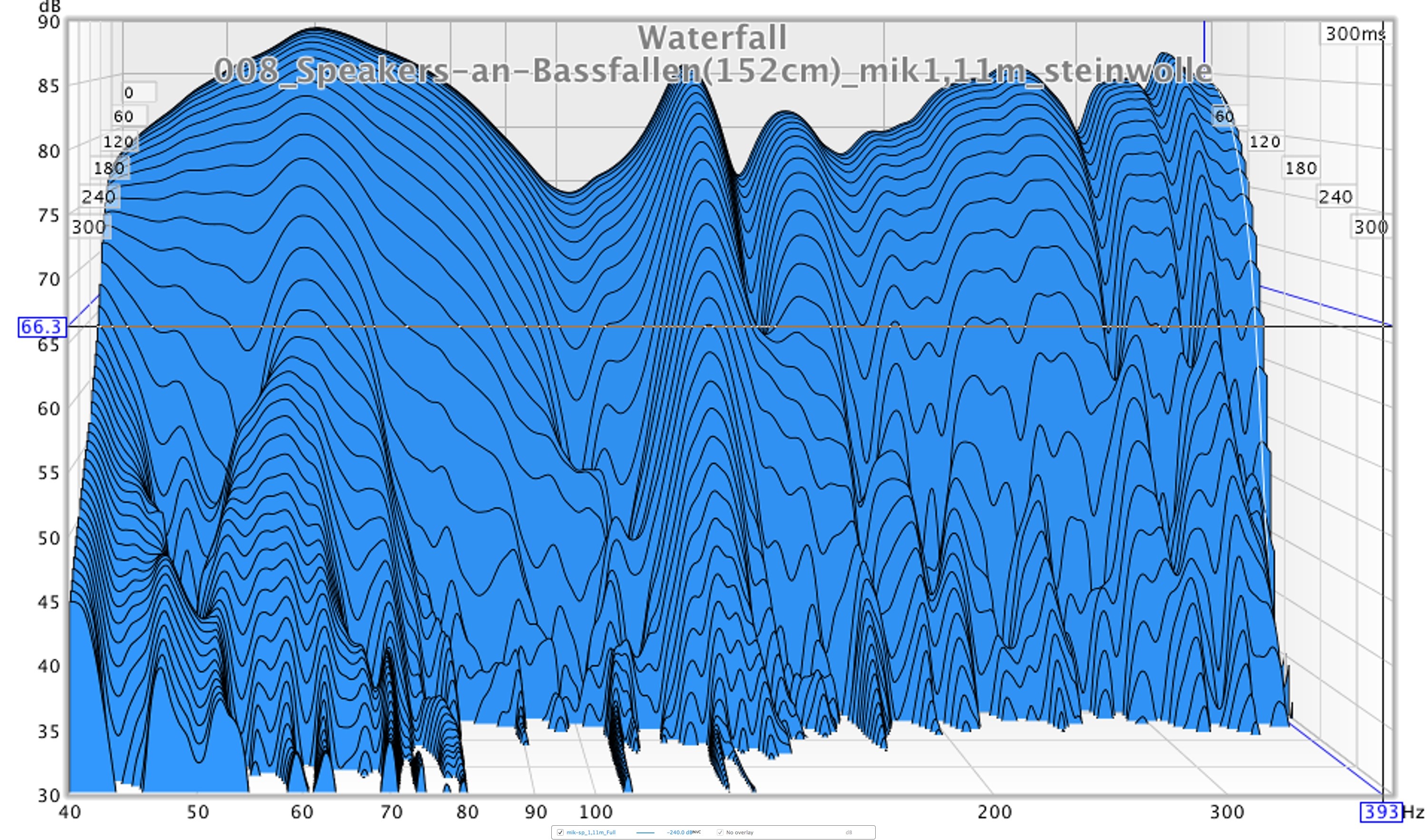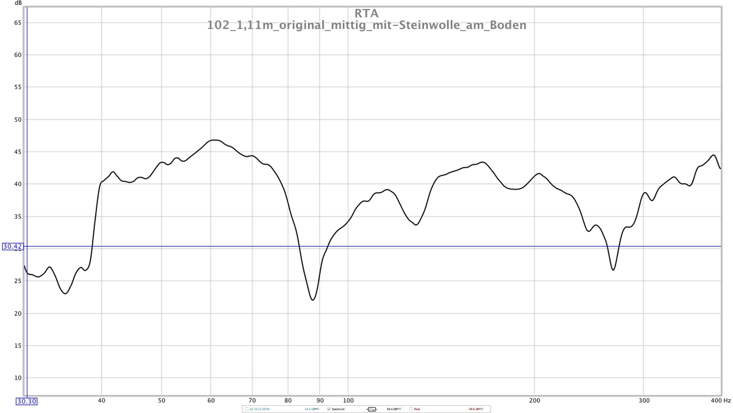 Stereodreieck (blau): 1,11m (mit und ohne Steinwolle am Boden)