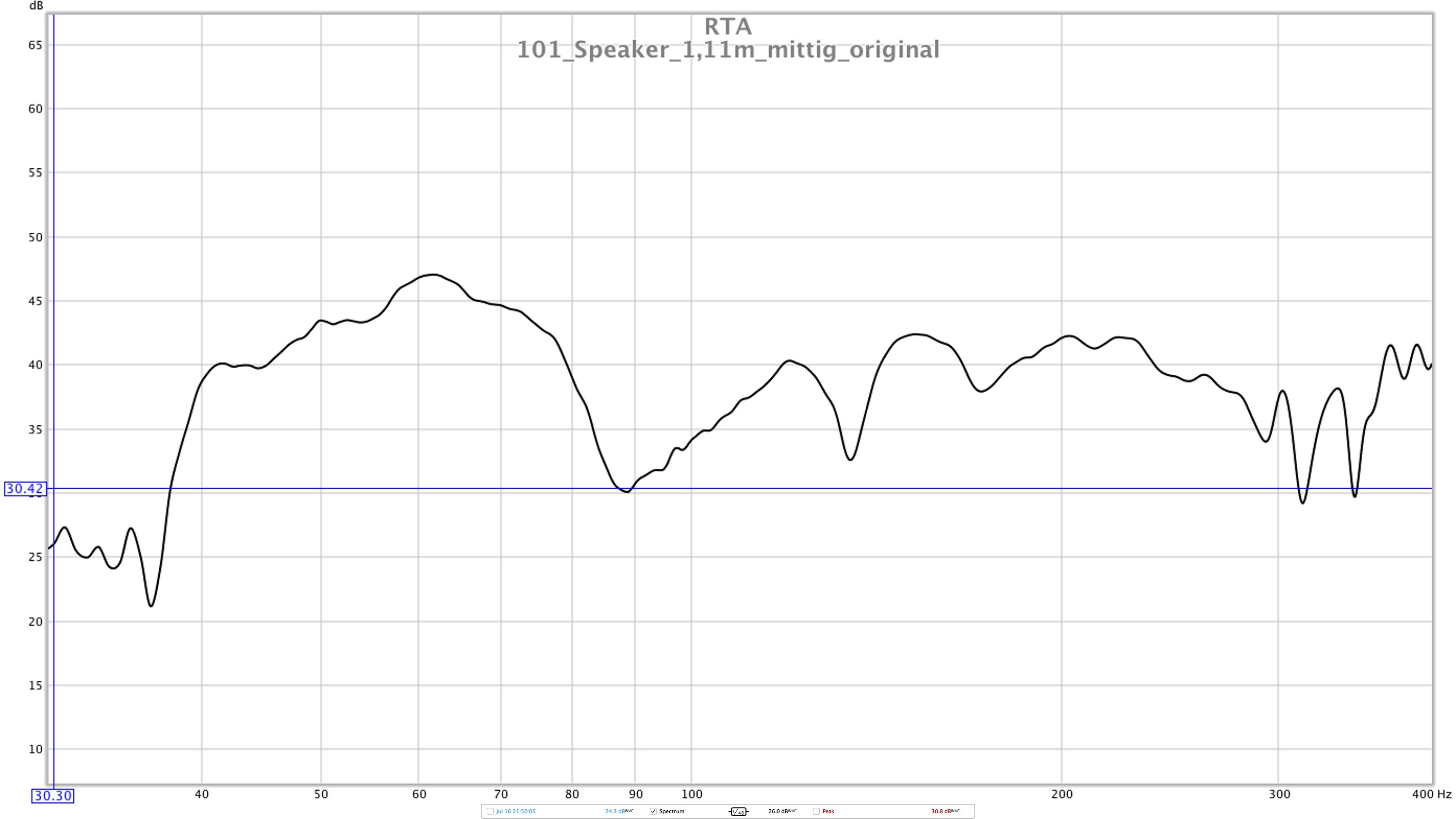 Ja die sehen besser aus. Probier mal da auf der 1,7 Position den Speaker noch nach links und rechts zu schieben. Vergiss die 1,7 mal und schieb zwischen 1,1 und 2m einfach den Speaker vorne hin und her und schau auf deinen Bildschirm. Spiel einfach auch gleichzeitig mit der Mic Position. Die Zahlen sind wie gesagt nur Anhaltspunkte. Schau auf die Veränderungen auf dem Bildschirm. Einfach ne Position finden die praktikabel ist (1,1 ist das ja nicht wirklich oder?) und den besten Frequenzverlauf darstellt. Eine Abweichung von + / - 5 Grad von den 30 ° Stereodreieck machen das Stereo Image hinterher auch nicht kaputt. Schau wo es so flach wie möglich wird. Auch dran denken, dass du vermutlich etwas innerhalb (so ca 30 cm von der Spitze weg) des Stereodreiecks sitzen wirst. Die Speaker sollen ja auf deine Ohren und nicht deine Nase schießen. Oder du neigst die Speaker später nur um die 25 ° ein wenn du die beste Position direkt an der Spitze findest, dann schießen sie auch auf deine Ohren.