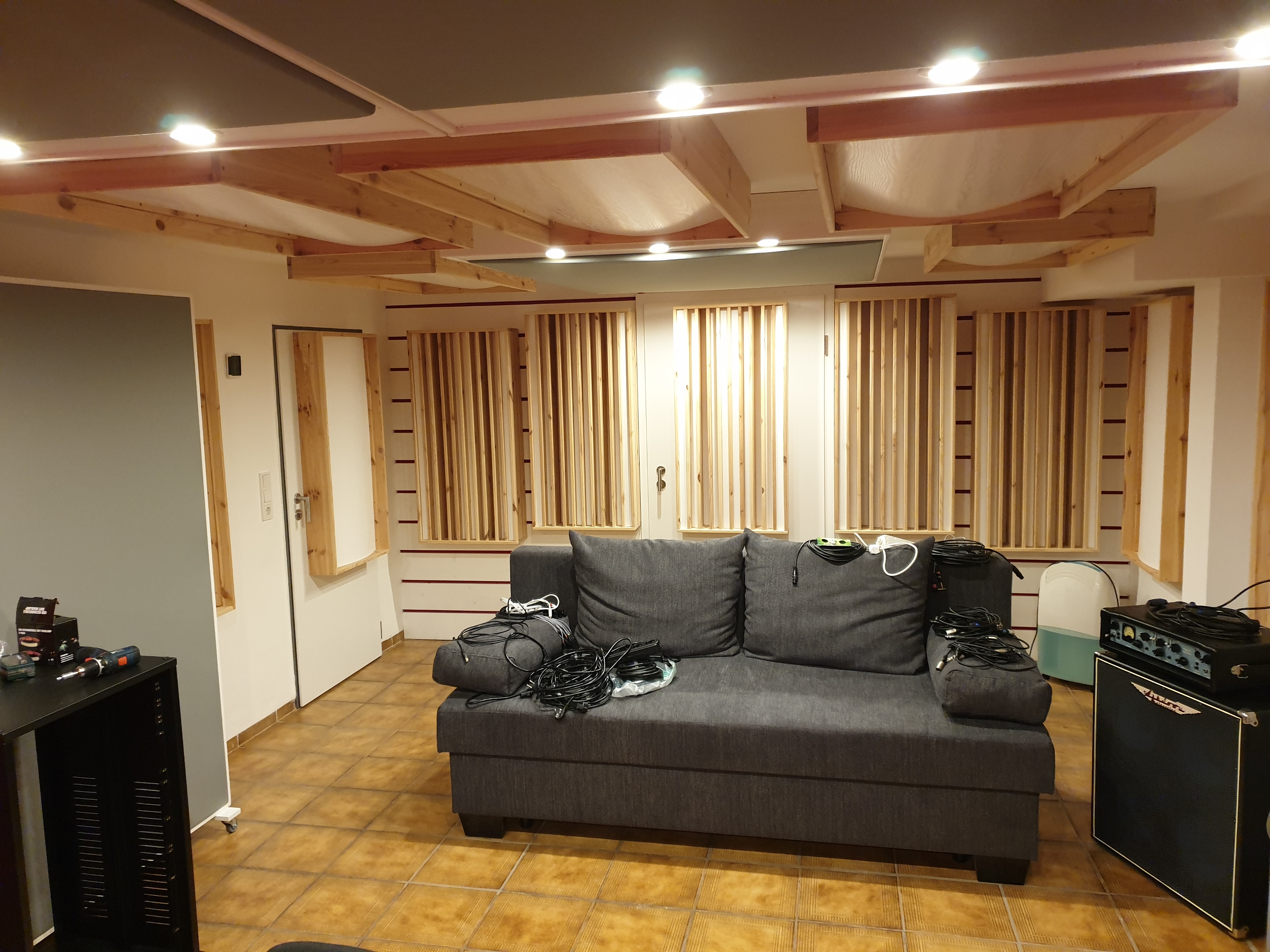 Trotz aller Widrigkeiten und Hürden habe ich gekämpft und meinen Traum vom Studio ein zweites Mal realisiert. Nun müssen nur noch an einem mobilen Absorber an einen Stelle 2 Rollen erhöht werden und dann kann ich mein restliches Equipment (insb. Gitarrenamps, Helix, pp.) noch rüber holen.