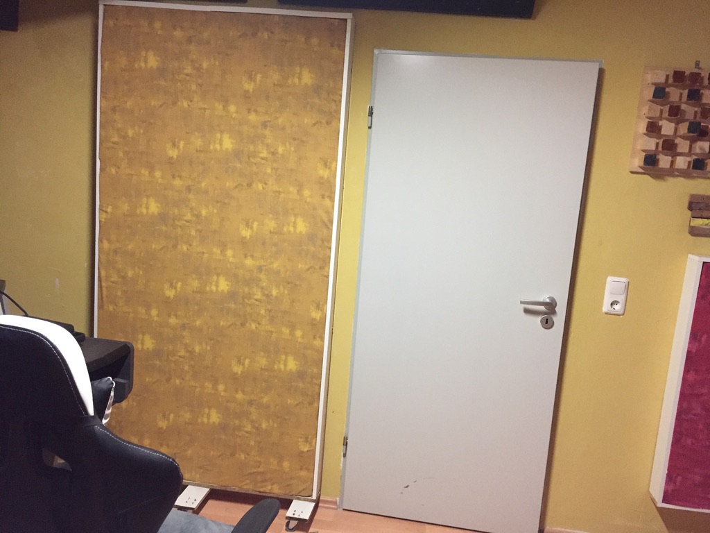 hier die neuen messungen ich habe jetzt neue bilder gemacht, vorn, hinten, beide seiten boden und 2 von der decke einmal vor und einmal hinten....schaut aber eh schon ganz passabel aus, aus amateursicht. auf der linken türseite könnte ich noch einen 1 x 0,5 m absorber anbringen. hinter der vorhängen 2 liegende module ohne holz. sowie an der tür direkt 5 cm absorber 1 x 0,5 m. was meinst du ? LG S